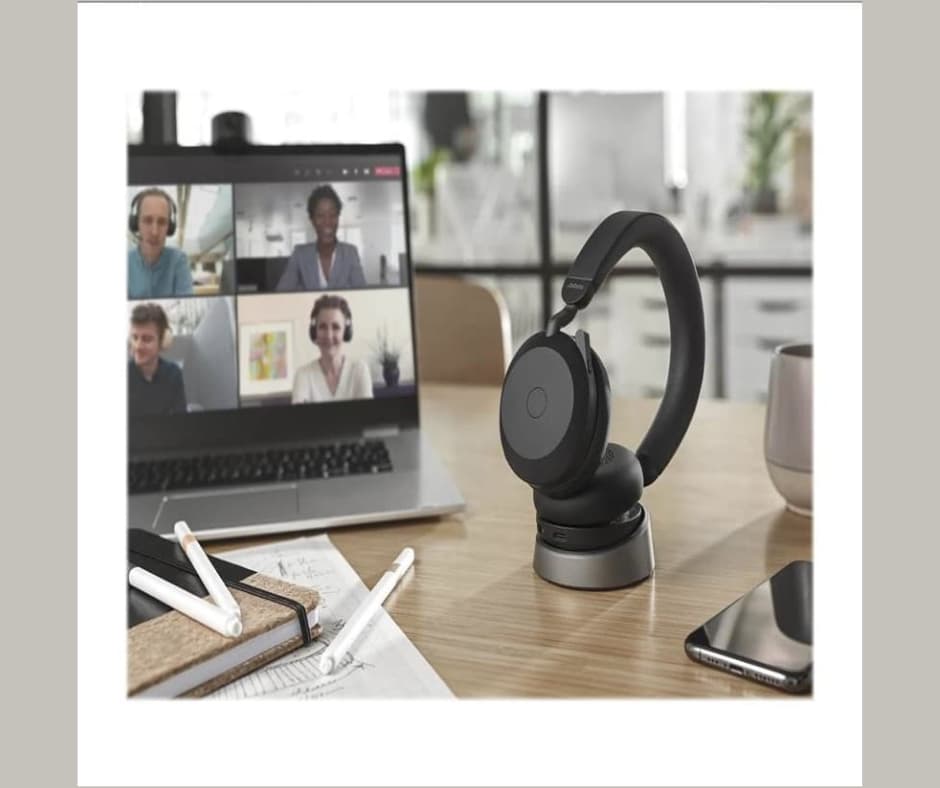 - Jabra Evolve2 75 Trådløs Kabling hovedtelefonerne kommer med kontrolknapper til styring af lydstyrke og nem navigation.