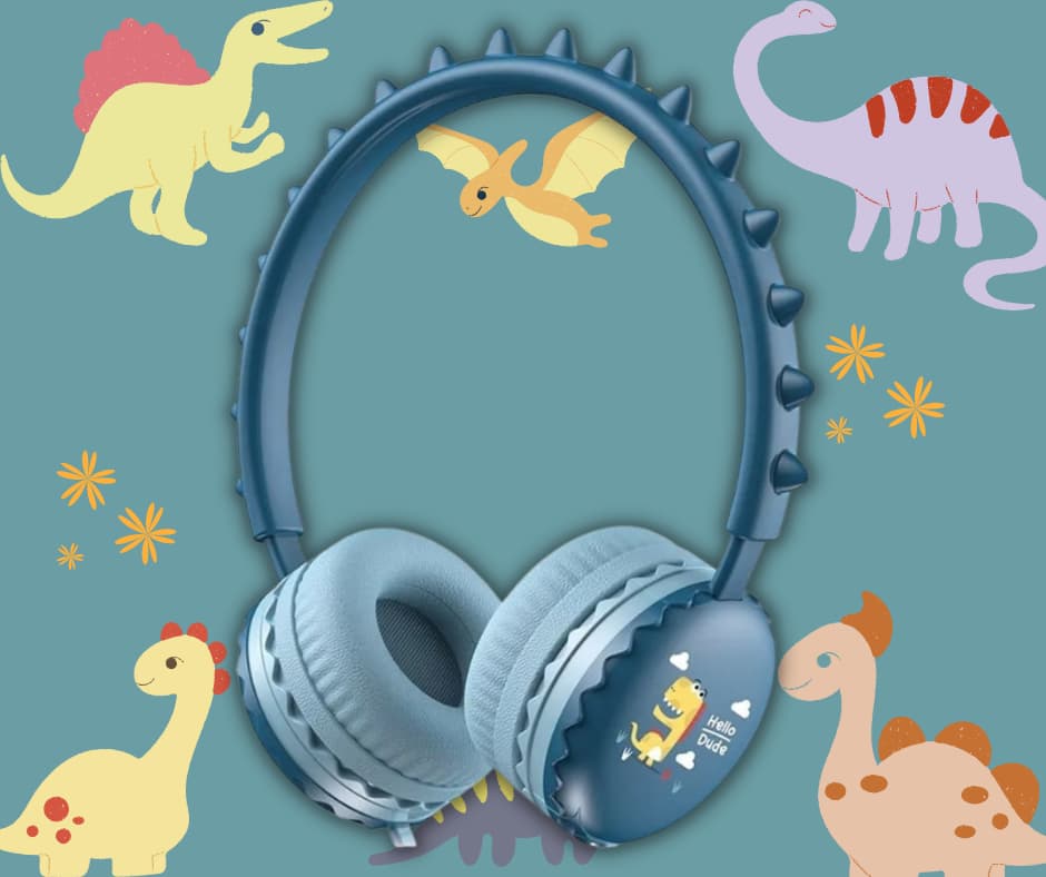 Det cool dinosaurus-look har et headband med 7-trins justering, som kan tilpasses alle størrelser. Hovedtelefonerne kan forbindes til enhver enhed der understøtter et 3.5mm jackstik. Headbandet har også en mikrofon og en lydløs-knap der er perfekt til online undervisning.