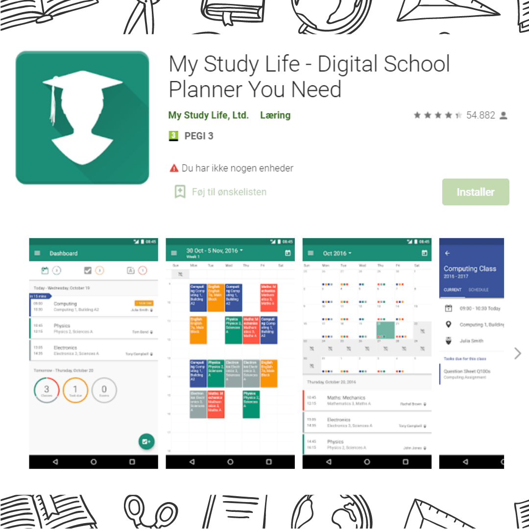 Appen er lavet til at være meget mere end blot en kalender-app. Du vil elske muligheden for at organisere alle fag og aktiviteter i et flot layout. Du får også mange funktioner såsom notifikationer om kommende lektier og prøver samt meget mere.