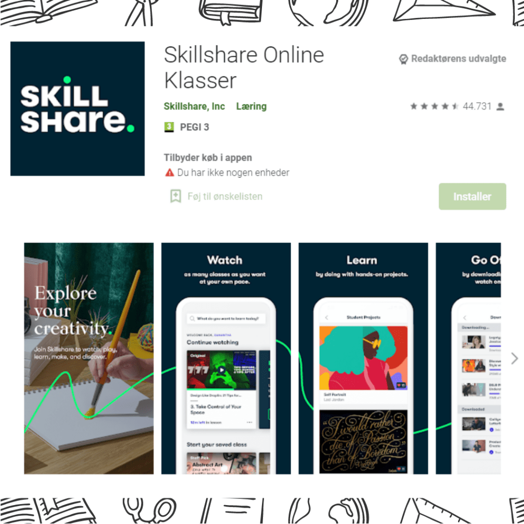 Uanset om du gerne vil lære en ny hobby eller kundskaber der kan hjælpe dig i din fremtidige karriere, så kan du finde den rette hjælp på Skillshare. Appen tilbyder et hav af højkvalitets videoer med indhold, som bliver fortalt af eksperter på området.