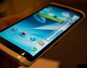 På årets CES præsenterede Samsung også en prototype telefon med fleksibel Youm skærm. Det er en touchskærms smartphone baseret på den fleksible OLED-teknologi som bøjer lidt til den højre side.