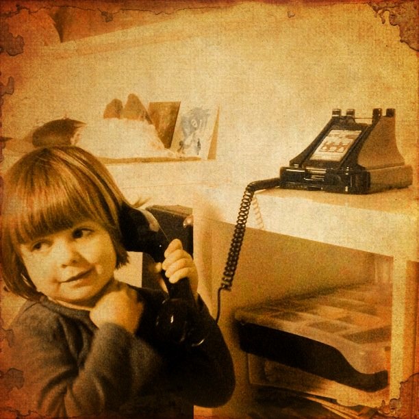 Tænker at dette billede siger alt. Mine børn anede ikke hvad det var jeg havde modtaget, så det var nærliggende at ringe til deres oldemor og afprøve vires nye fine retrotelefon. Tænker tilbage på de hyggelige samtaler jeg havde med min oldemor og oldefar i en rigtig telefon. Stor og en smule klodset men tænk at kunne stå stille eller sidde stille ét sted og snakke uden at man går rundt og laver alt mulig andet.. Nu er vi tilstede i samtalen og vores lille agnete på tre år nød at snakke med oldemor og oldemor kunne for en gangs skyld høre hvad der blev sagt i den anden ende. Vi er meget glade for vores nye fine telefon.
