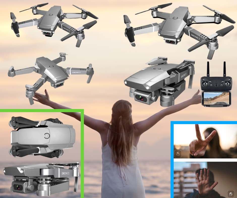 Få et fugleperspektiv af din sommerferie med E68 Mini Foldable Drone. Dronen leveres med et 720p HD-kamera til at tage billeder eller videoer. Du kan bruge din mobiltelefon til at styre flyvebanen ved bekvemt at placere den på fjernbetjeningen.