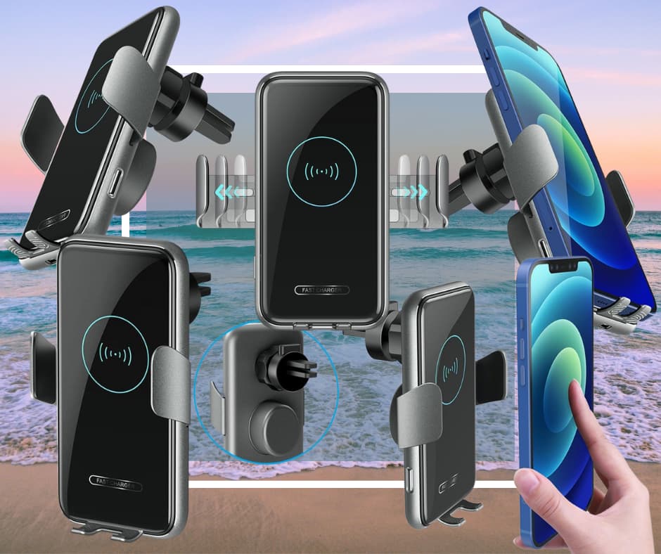 Hold din smartphone opladet og synlig med V8 2-i-1 bilholder med trådløs oplader. Denne oplader klipses fast på bilens udluftningsåbning, så skærmen er let synlig og klar til brug. De selvjusterende klemmer holder din telefon sikkert fast uden at beskadige den.