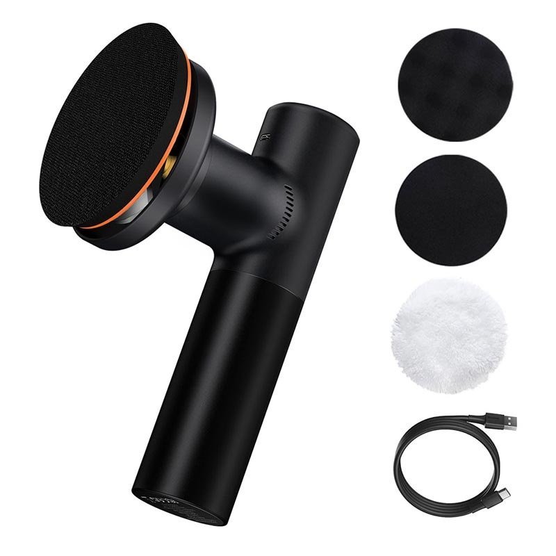 - Den trådløse elektriske polermaskine fra Baseus har et excentrisk rotationshoved, der sikrer en glat polering uden at beskadige malingen.