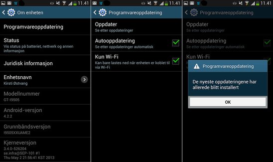 Til sidst bør du trykke på “Installer nu” for at opgradere. Opdateringen vil blive downloadet, og telefonen vil genstarte, eller der vil stå følgende: «De nyeste opdateringer er allerede blevet installeret».