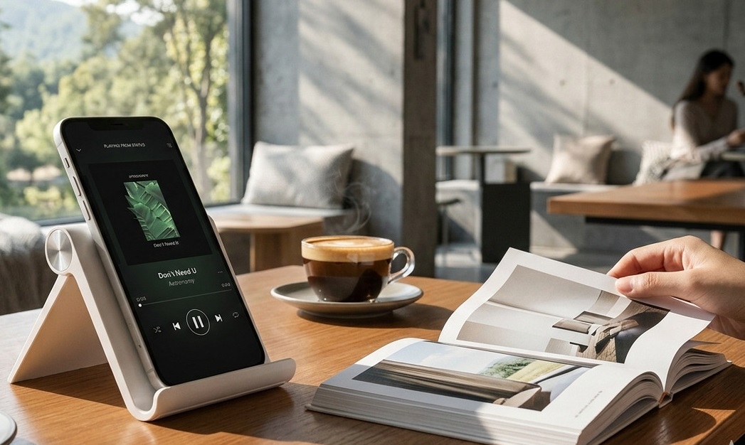 Når den placeres i en stabil mobilholder, ændrer oplevelsen sig. En model som Tech-Protect Z1, gør telefonen til en lille workstation.