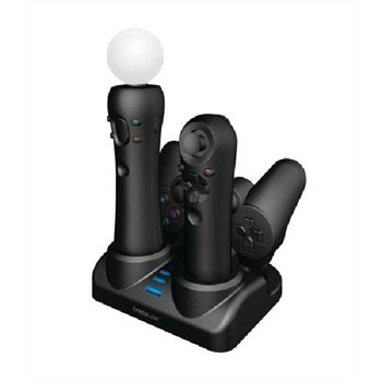 Speedlink TriDock 3-i-1 og BAY 4-ports dock til dit Move kontrollersæt. Med Speed Link TriDock 3-i-1 Move opladnings system kan du oplade din PS3 gamepad og Move kontroller samtidig. BAY 4-port tillader dig at genoplade fire Move kontrollere – 2 Bevægelses- og 2 navigationkontrollere. Både TriDock 3-i-1 og BAY 4-port inkluderer en 230V skrømforsyning og er fuldstændig uafhængig af konsollen.