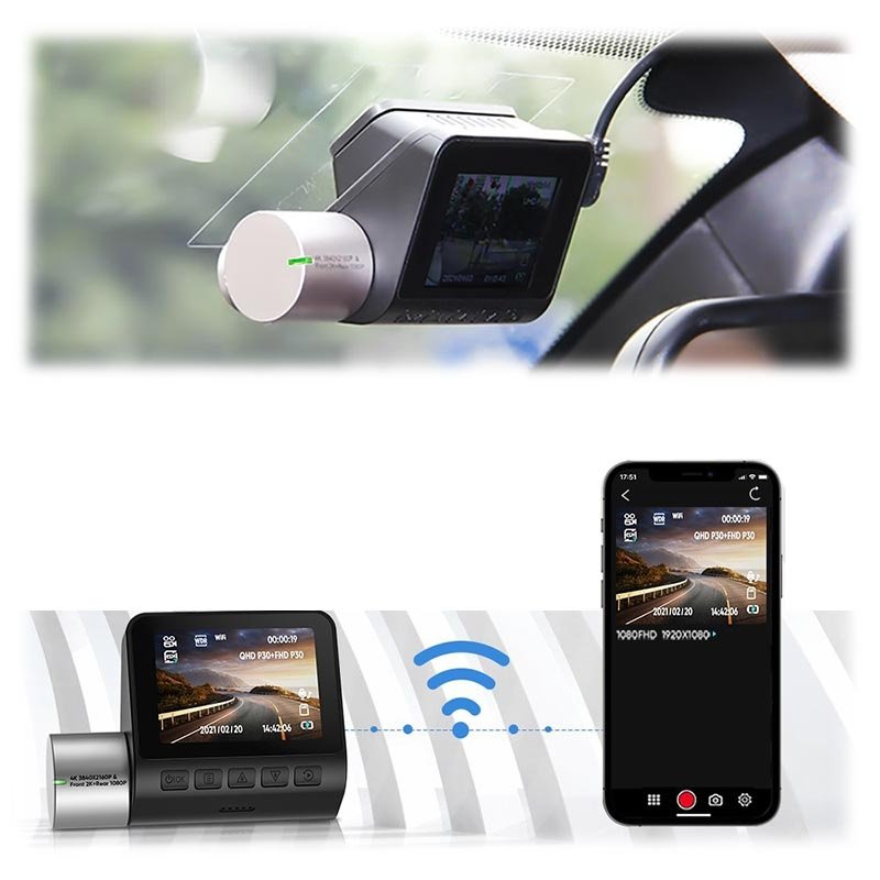 Denne fantastiske gadget er udstyret med en G-sensor, som aktiverer optagelsen, når der registreres en ulykke eller en pludselig opbremsning. Takket være dens Wi-Fi-understøttelse kan du forbinde de fleste smartphones med denne opsætning og få adgang til den.
