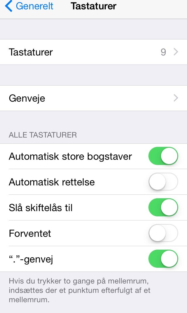 Hvis du ønsker at deaktivere funktionen, så gå til Indstillinger> Generelt> Tastatur, og slå afbryderen for “Forventet” fra.