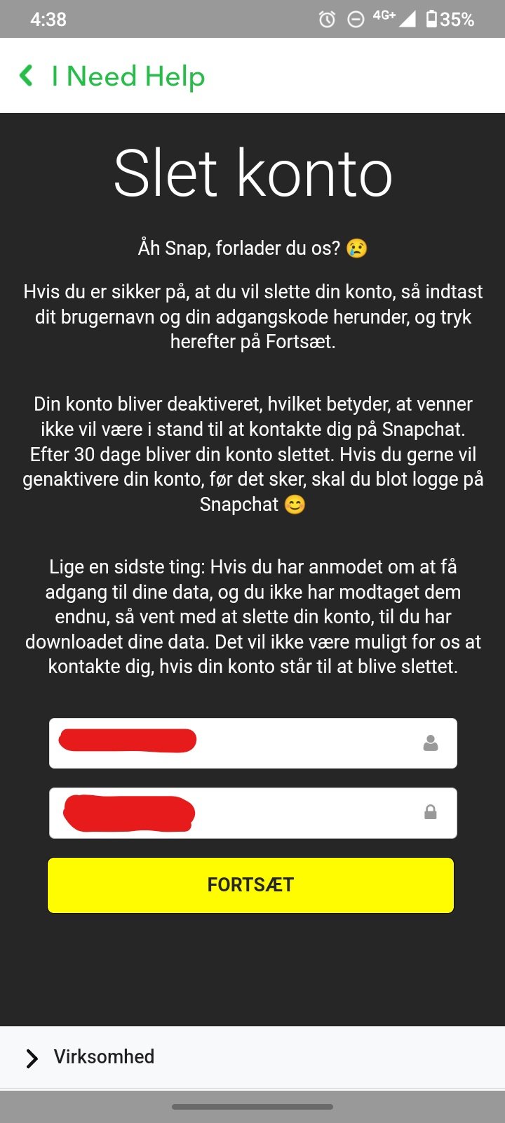 Ved at trykke på kontoportal knappen, får du endelig mulighed for at deaktivere din konto. Kontoen slettes 30 dage efter deaktivering.