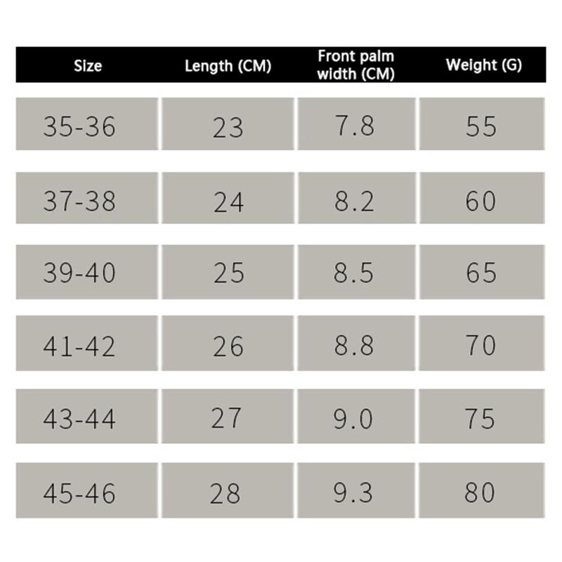 Størrelse 45-46: Længde: 28 cm, forfodsbredde: 9,3 cm, vægt: 80 g