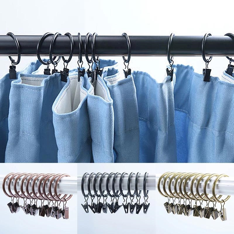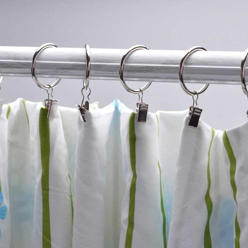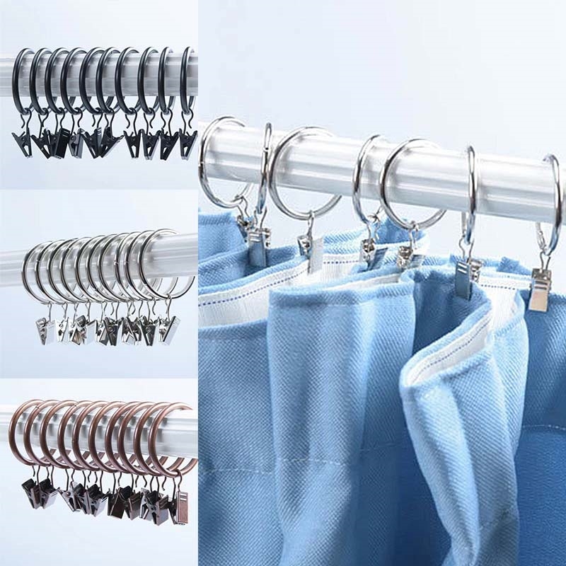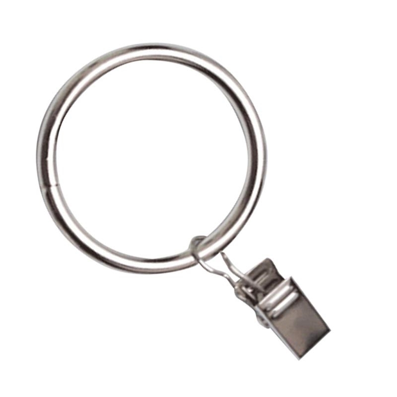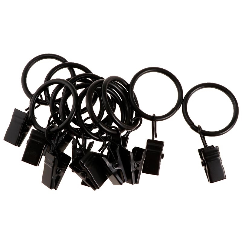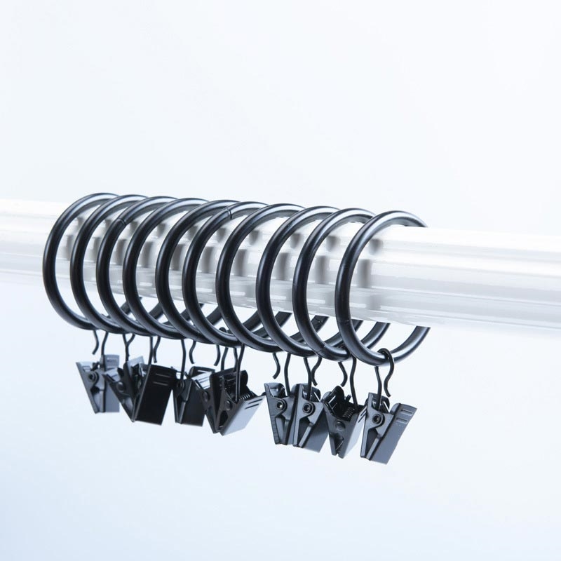 10 stk. kraftige badeforhængsringe med clips - rustbestandige jernkroge, 25 mm