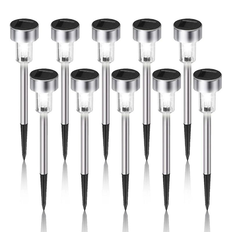 10-pak LED-stibelysning i rustfrit stål med solceller 5,5 cm - IP65-lamper til haven og plænen