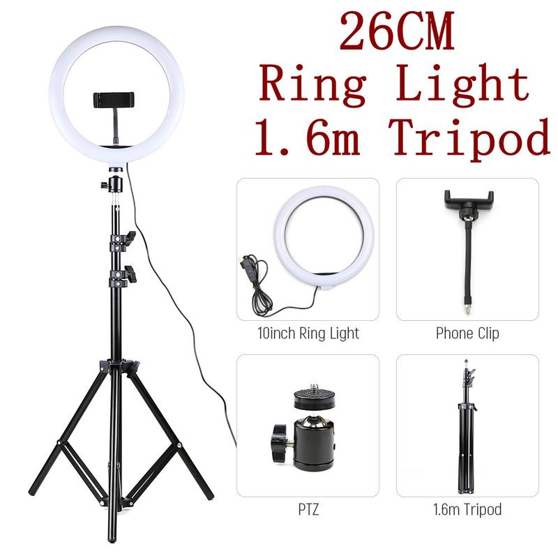 10" USB-drevet ringlys med 160cm teleskopstativ til videooptagelser til liveudsendelser