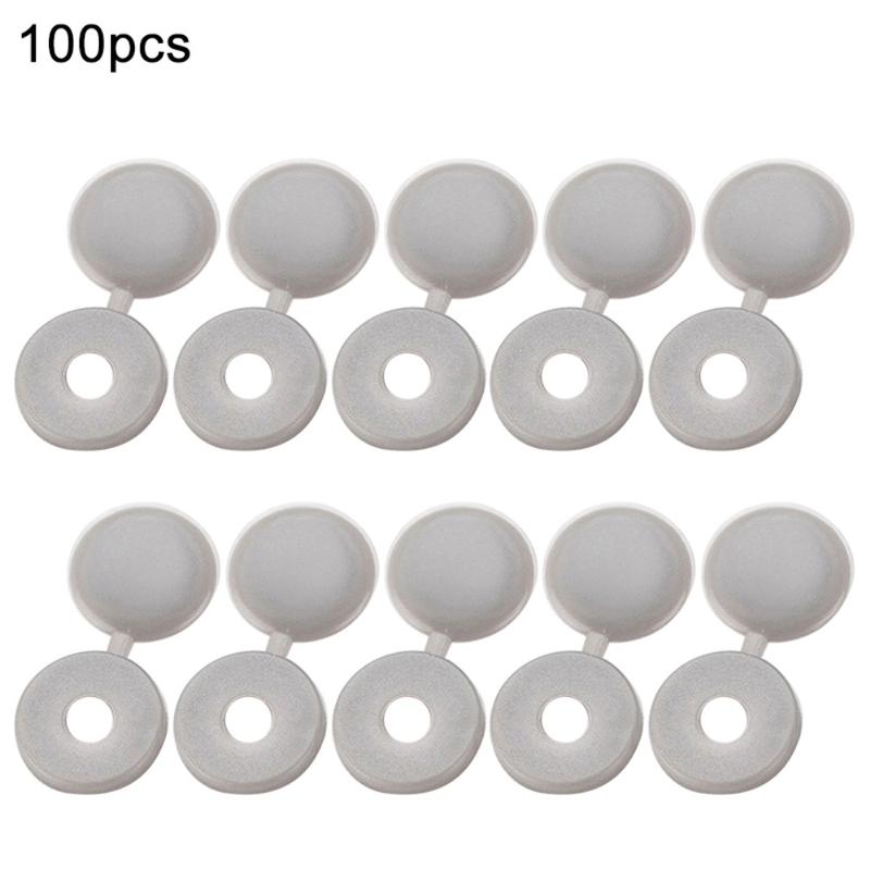 100 stk. Hængslede plastikskruedæksler - 13 mm ydre diameter, 5 mm hul, snap-on skruedæksler til selvskærende skruer