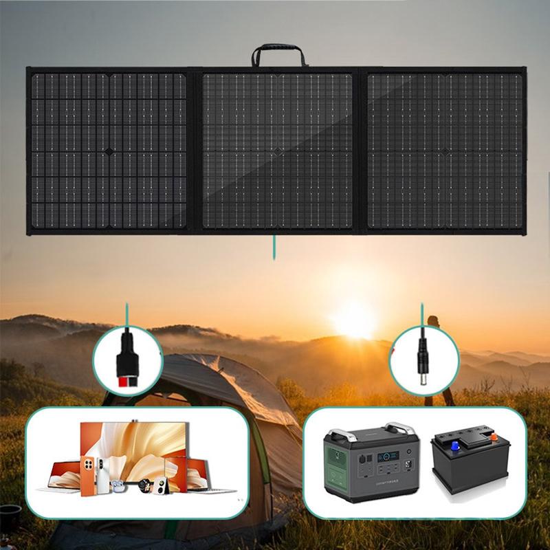 Den bærbare 100W solcellepaneloplader er designet til udendørs eventyr, rejser og nødstrømforsyning. Den er bygget med højeffektive monokrystallinske silicium-solceller og leverer pålidelig solenergi, samtidig med at den er let og nem at transportere. Takket være det tredobbelte design kan panelet foldes ud til en stor opladningsflade og foldes kompakt sammen til opbevaring. Med flere udgangsgrænseflader, herunder USB, USB-C og DC, understøtter den opladning af smartphones, tablets, kameraer, droner og bærbare strømstationer. Den vand- og støvtætte konstruktion i IP65 sikrer pålidelig ydeevne under skiftende udendørsforhold.