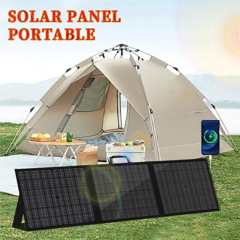 100W bærbar solcellepaneloplader - 3-delt design - IP65 vandtæt solcelleoplader til camping og vandreture