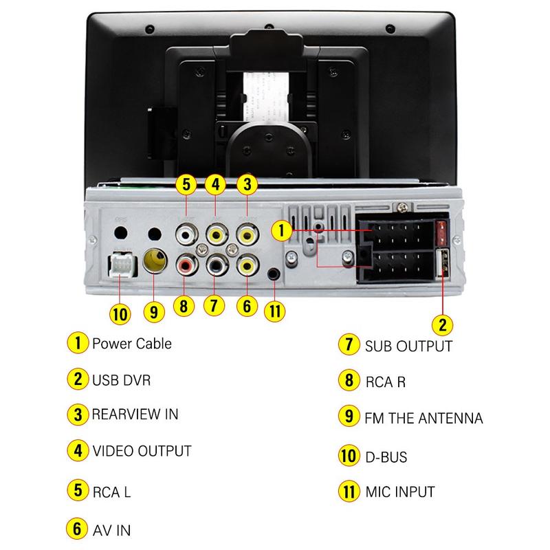 Understøttelse af medier: Understøtter forskellige mærker af U-diske med ubegrænset kapacitet/USB-kortlæsere/audio-videoindgang (AUX IN)/audio-output (subwoofer)/videooutput (samme skærmvisning)