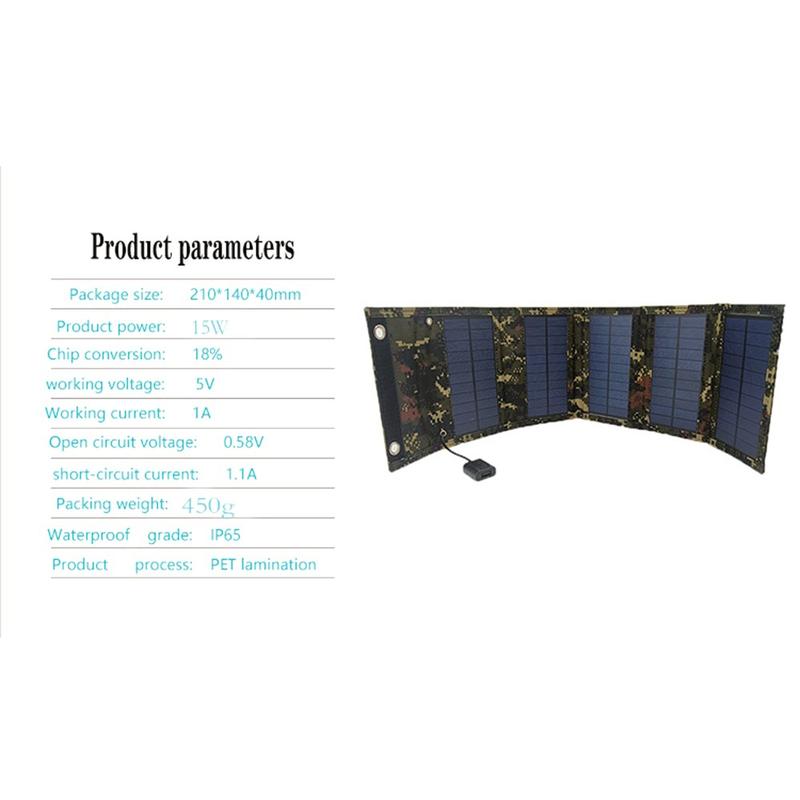 - 15W foldbar solcelleoplader med 5 paneler for forbedret overfladeareal og bærbarhed