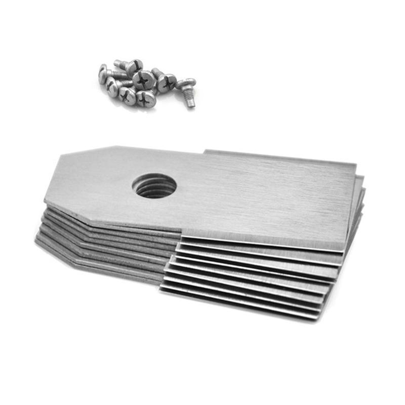 Opfrisk din robotplæneklippers skær på få minutter. Disse 35 × 18 mm knive, der er præcisionsslebne af korrosionsbestandigt rustfrit stål, passer direkte i Husqvarna Automower®, Gardena Sileno, McCulloch ROB og andre kompatible robotter og giver en ren, jævn klipning uden at sprænge budgettet. Den store pakke med 18 knive rækker til flere sæsoner, så din plæne forbliver glat, og maskinens batteri bruger mindre energi på at bekæmpe stumpe kanter.