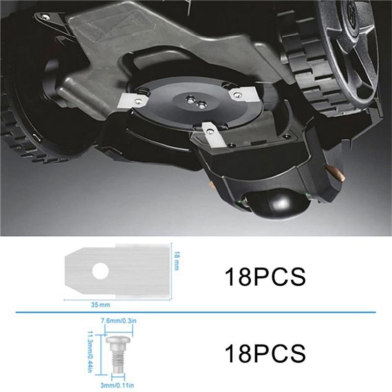 18-pak udskiftningsknive i rustfrit stål - 35 × 18 mm, passer til Husqvarna / Gardena / McCulloch / Herkules / FLYMO / Telsing robotplæneklippere