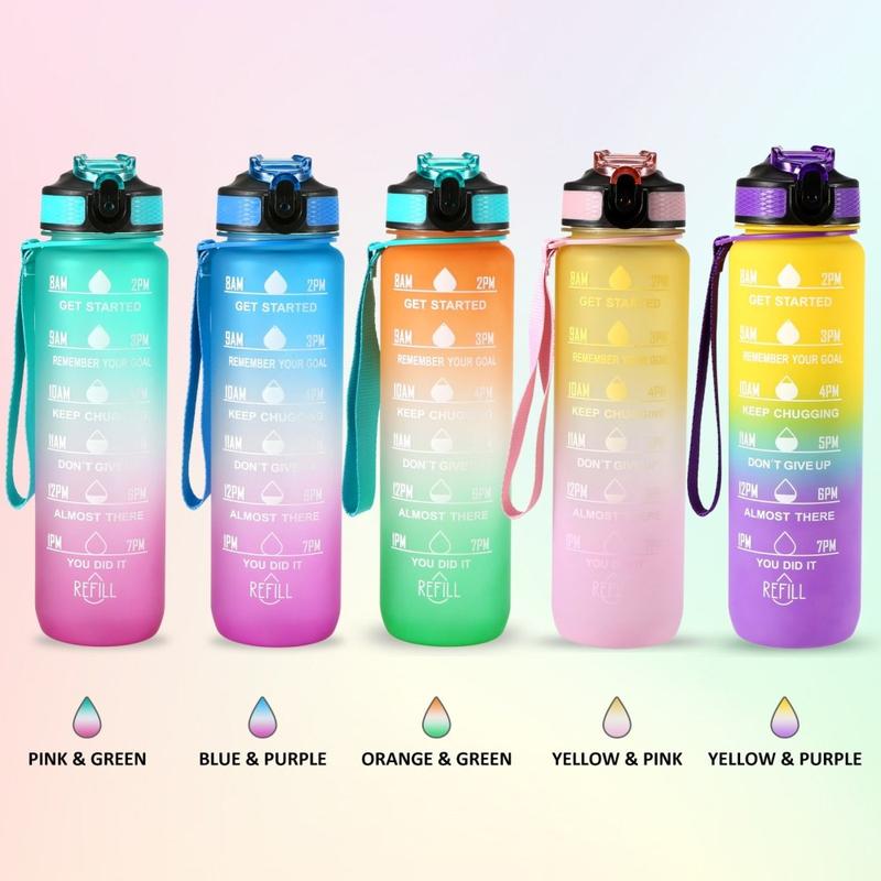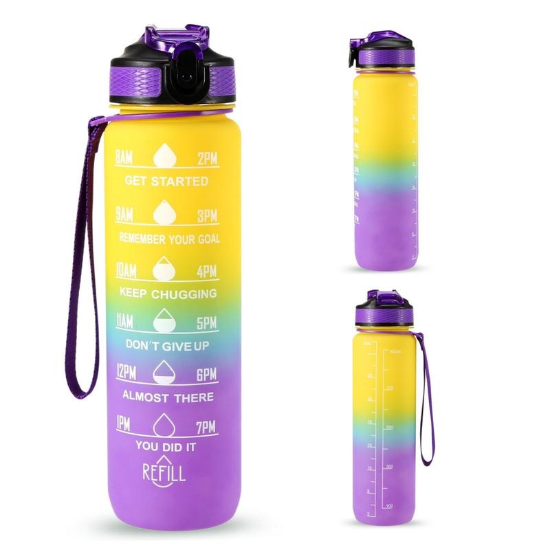 1L Sportsvandflaske med Tidsmarkeringer - Blå / Lilla