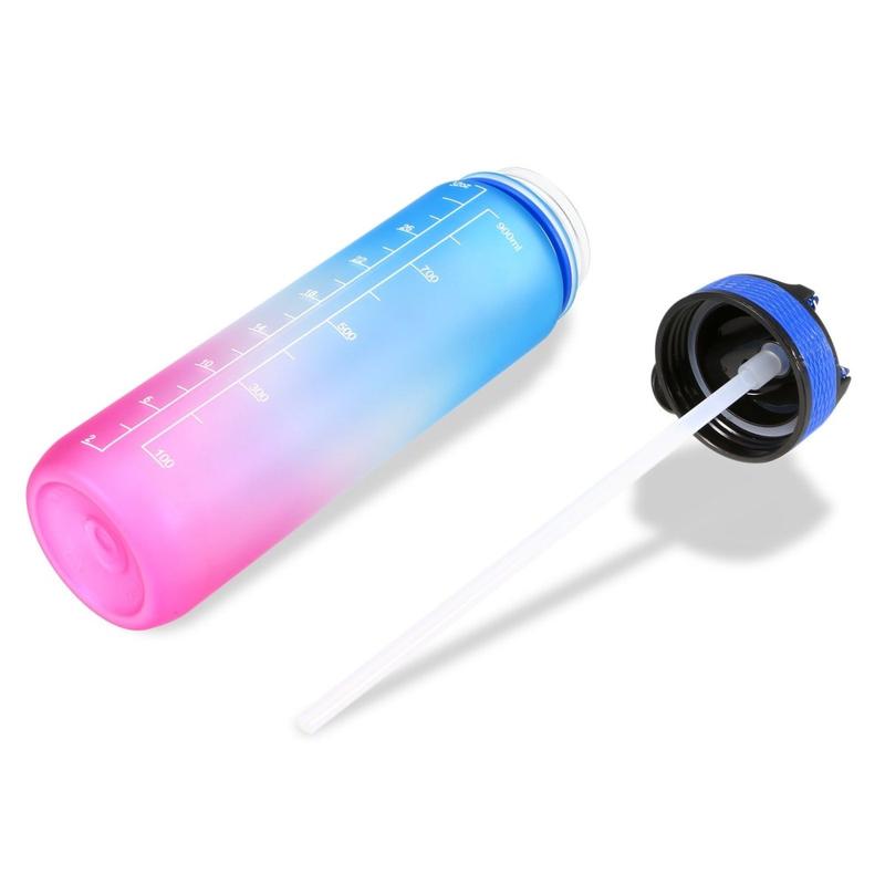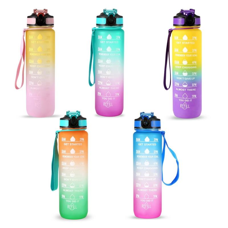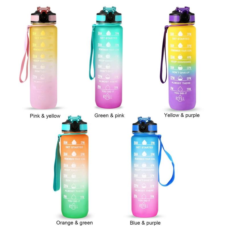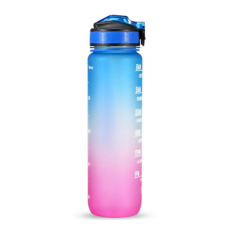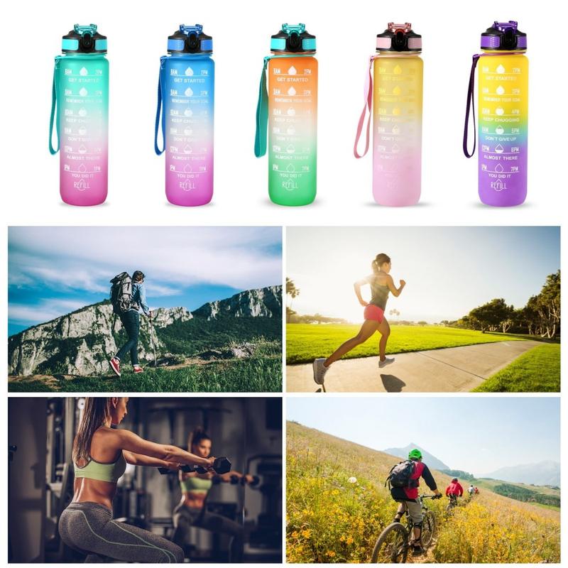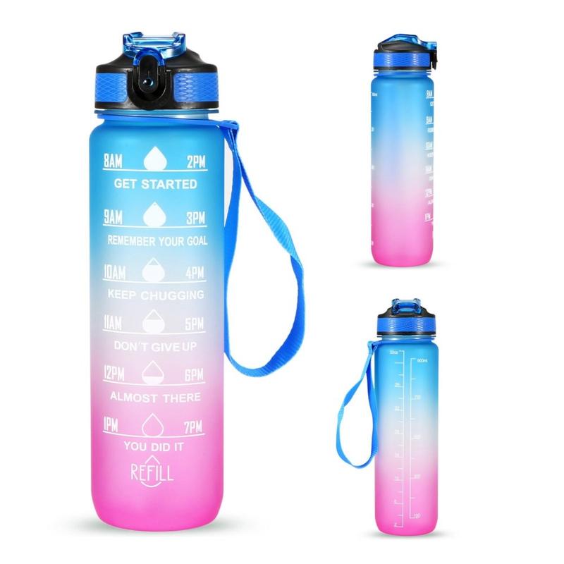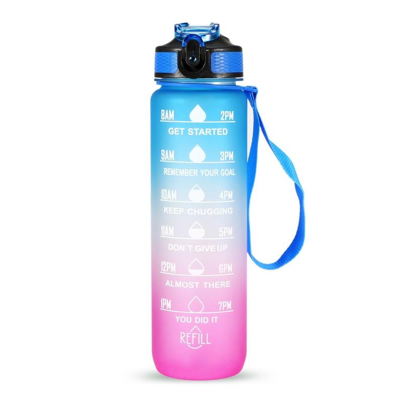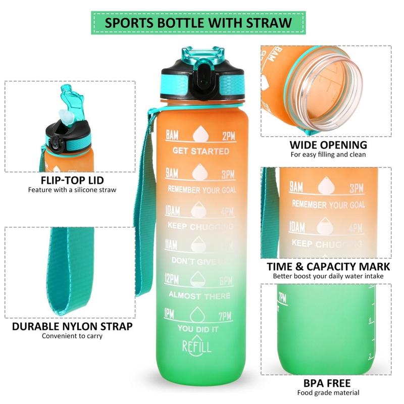 Denne 1-liters sportsvandflaske er designet til at hjælpe dig med at holde dig hydreret hele dagen. Med tidsmarkeringer og inspirerende citater fungerer den som en påmindelse om at opretholde dit daglige væskeindtag. Fremstillet af miljøvenlige, BPA-fri og fødevaregodkendte materialer sikrer flasken sikker og lugtfri brug. Dens lækagesikre design, silikonesugerør og holdbare nylonrem gør den praktisk til forskellige aktiviteter, herunder træning, løb, vandreture, cykling, camping, yoga og meget mere.