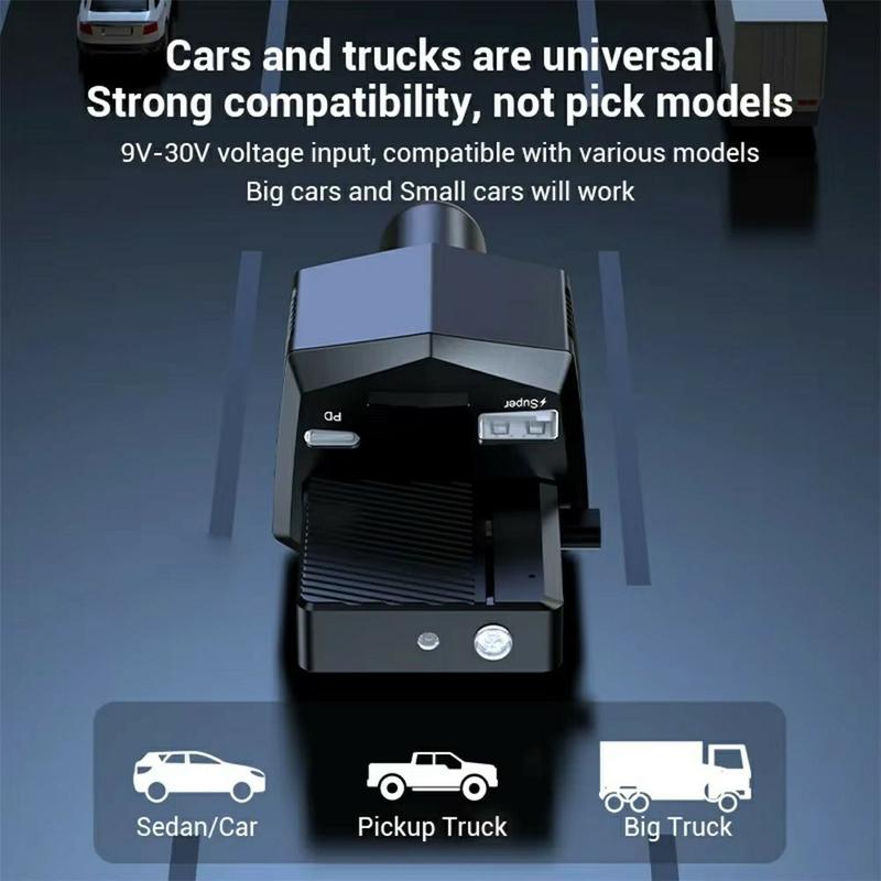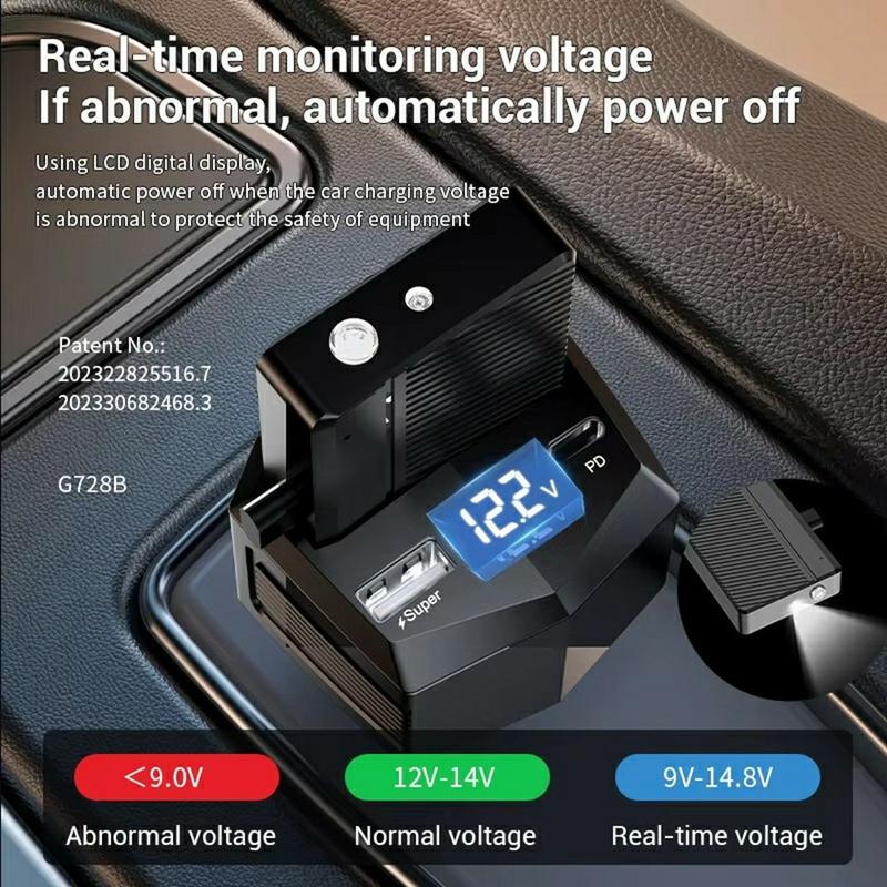 Denne multifunktionelle enhed gør det nemt at oplade dine enheder både i bilen og på farten. Dens hurtige opladning sikrer minimal nedetid for dine gadgets, mens den indbyggede lommelygte tilføjer et ekstra lag af nytte i uforudsete situationer. Det digitale display giver information i realtid om bilens batterispænding, hvilket bidrager til proaktiv vedligeholdelse af bilen.