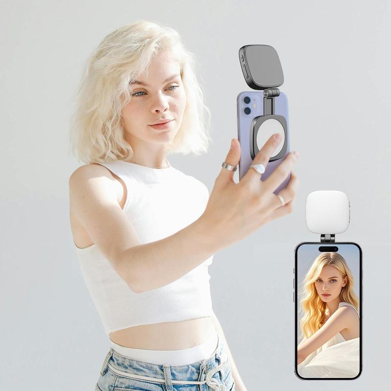 Dette bærbare udfyldningslys løser problemet med hårde skygger og dårlig belysning, der ofte ødelægger smartphone-fotos. Den magnetiske holder giver øjeblikkelig fastgørelse, mens det indbyggede spejl giver ekstra bekvemmelighed for både skabere og hverdagsbrugere. Den er kompakt, stilfuld og genopladelig og giver en professionel belysning uden stort udstyr - en værdifuld opgradering for alle, der er afhængige af deres telefon til fotos eller videoer.