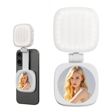 2-i-1 magnetisk LED-selfie-lys med makeupspejl - bærbar smartphone-fotolampe
