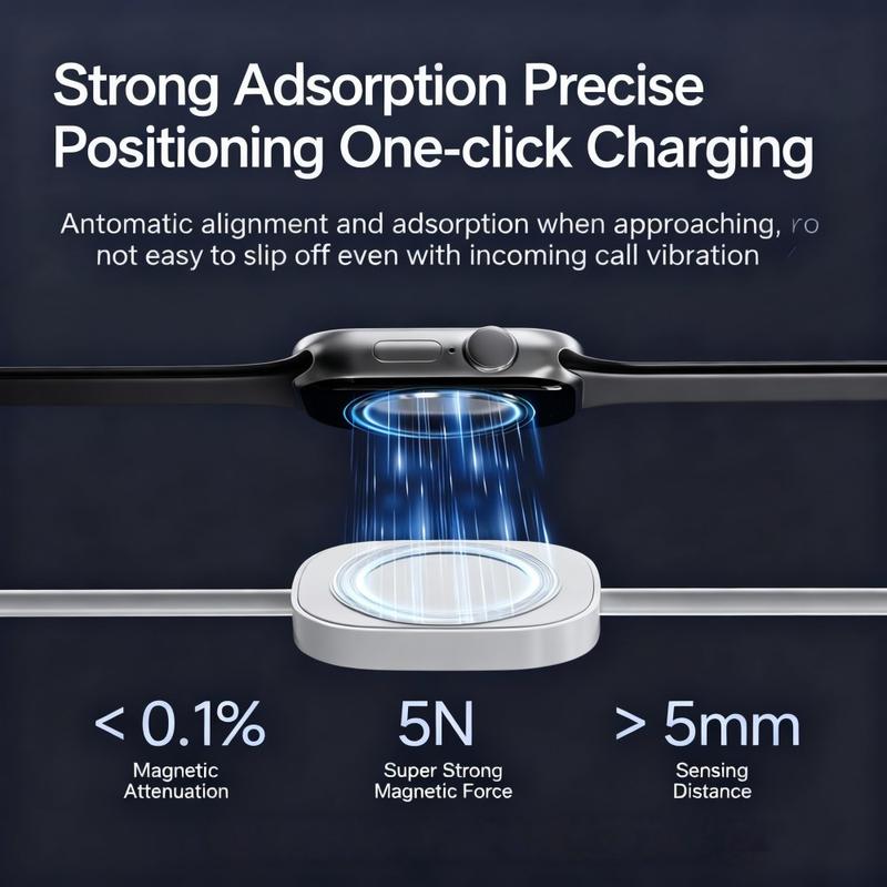 - Magnetiske Apple Watch-opladere bruger præcis justering for at reducere energitab og forhindre overophedning.