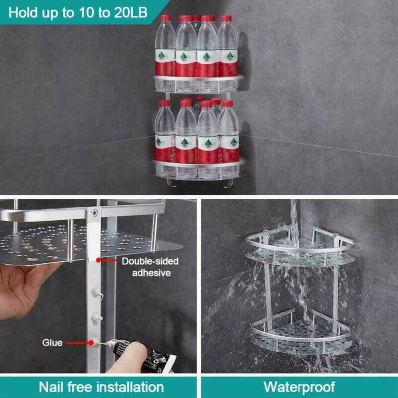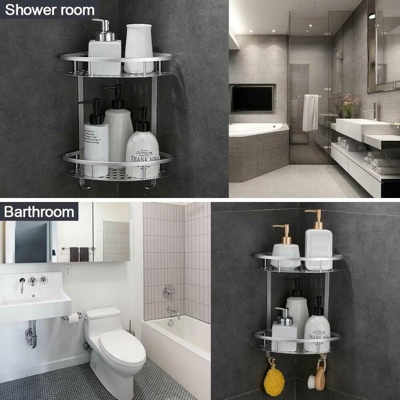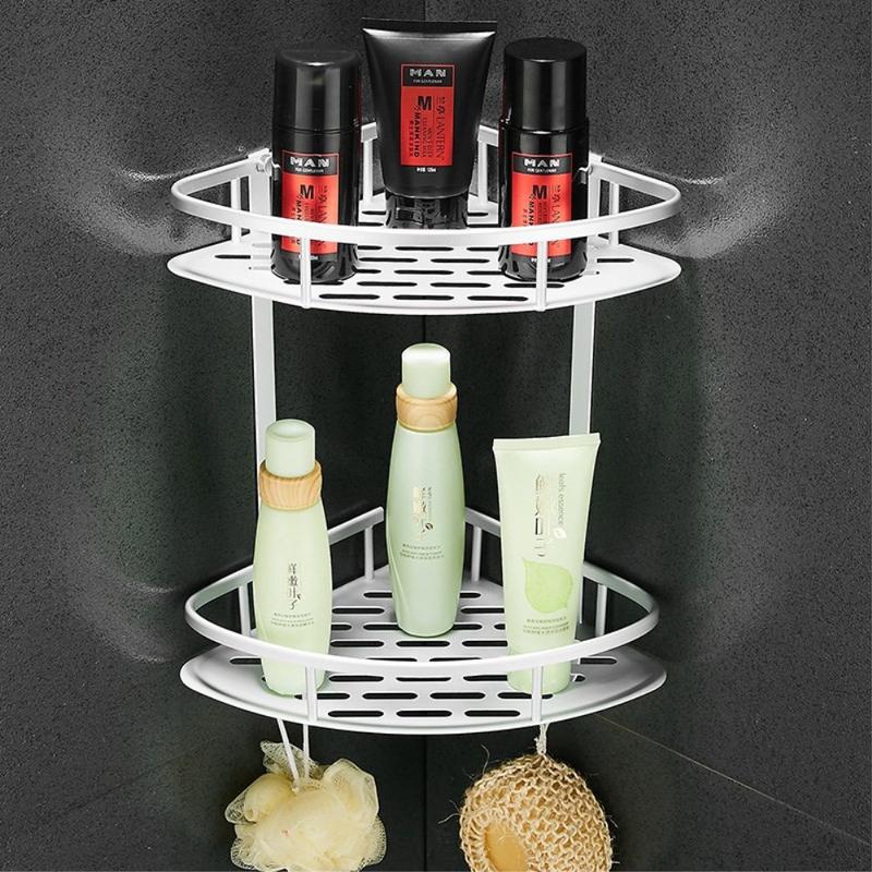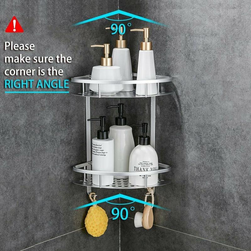 - Triangulært design i 2 etager - Maksimerer den lodrette hjørneplads og giver rigelig plads til shampoo, sæbe, barbermaskiner og meget mere uden rod.