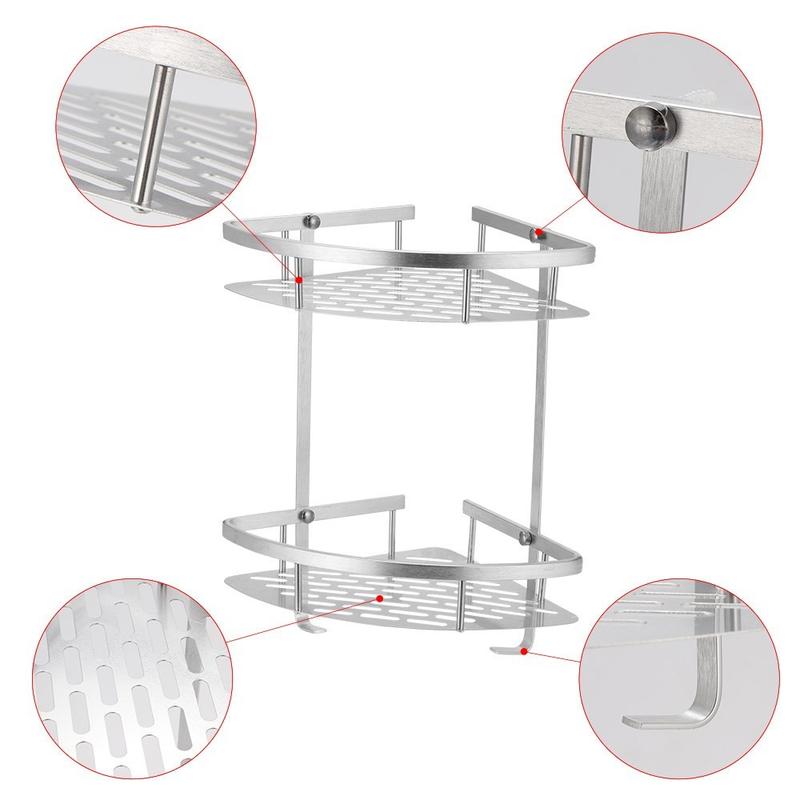 Forvandl din badeværelsesorganisation med denne hjørnehylde i aluminium med to lag. Designet til at opbevare alle dine vigtigste ting - shampoo, sæbe, balsam og meget mere - frigør denne 2-lags trekantede hylde gulvplads, mens den holder alt inden for rækkevidde. Den er fremstillet af holdbart aluminium og er rustbestandig, hvilket sikrer en ren, ryddelig og langtidsholdbar opbevaringsløsning.
