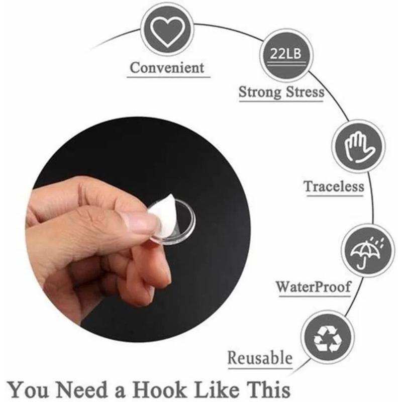 Disse klæbende lofts- og vægkroge giver dig hurtig, skadefri ophængning, uanset hvor du har brug for det. Med et gennemsigtigt design, et stærkt greb og montering uden brug af værktøj er de ideelle til dekorationer, events eller hverdagsorganisering - især på steder, hvor søm og skruer ikke er en mulighed.