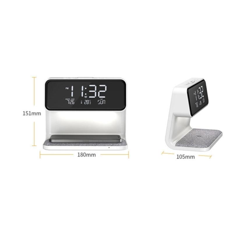 3-i-1 10W trådløs mobiloplader med sengelampe, LCD-vækkeur til hjemmet (EU-stik)