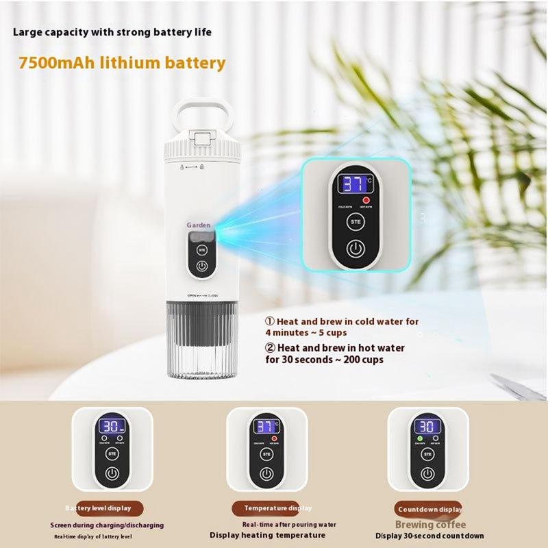 Nyd kaffe i baristakvalitet overalt med den bærbare espressomaskine, en kompakt og trådløs kaffemaskine designet til rejser, udendørs eventyr og daglig brug. Med to driftstilstande giver den mulighed for ekstraktion ved stuetemperatur for fyldig kaffesmag og opvarmet ekstraktion for hurtig, varm espresso efter behov. Med et genopladeligt batteri på 7500 mAh kan denne kaffemaskine bruges 4-5 gange i opvarmet tilstand eller over 200 gange i stuetemperaturtilstand på en enkelt opladning. Den er bygget af holdbart ABS og 304 rustfrit stål og tåler hyppig brug, samtidig med at den leverer et tryk på op til 21 bar for ekstraktion i professionel kvalitet. Den er kompakt, let og USB-opladelig og er den perfekte kaffekammerat til hjemmet, kontoret, bilture eller udendørs aktiviteter.