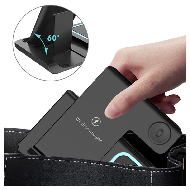 - 3-i-1 trådløs og transportabel opladerstation til Apple Watch, iPhone, AirPods