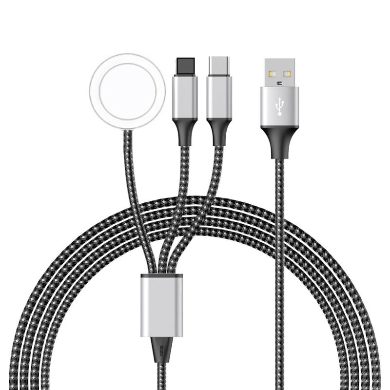3-i-1 flettet opladerkabel - Type-C, Lightning, Apple Watch