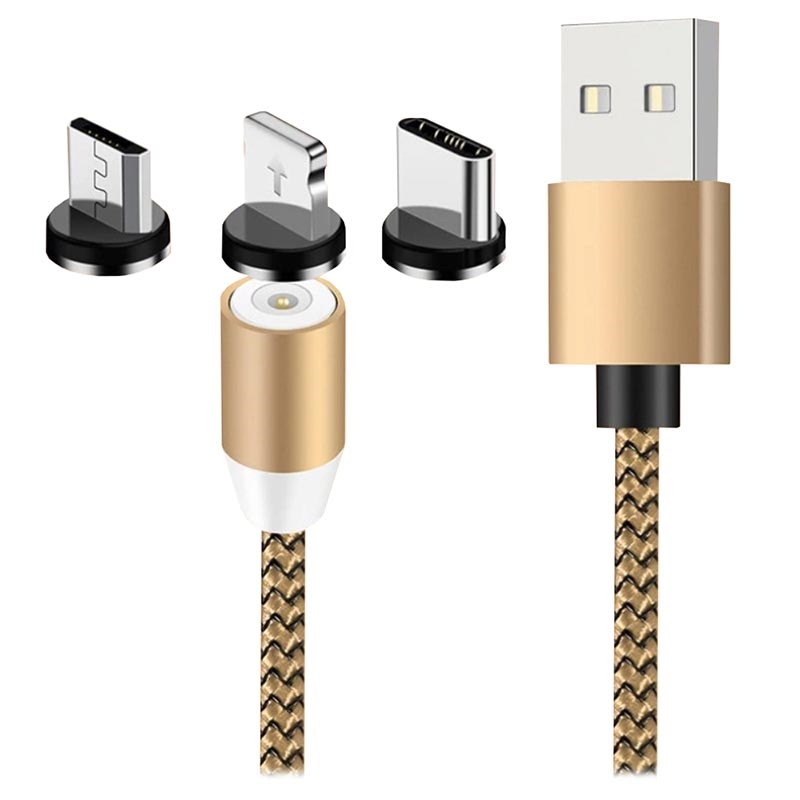 3-i-1 LED Magnetisk USB Kabel - Lightning, USB-C, MicroUSB - 1m