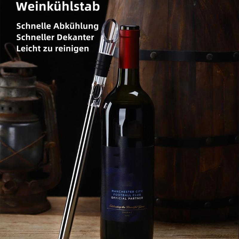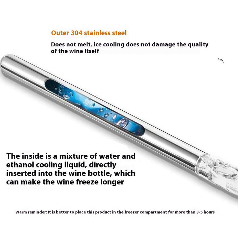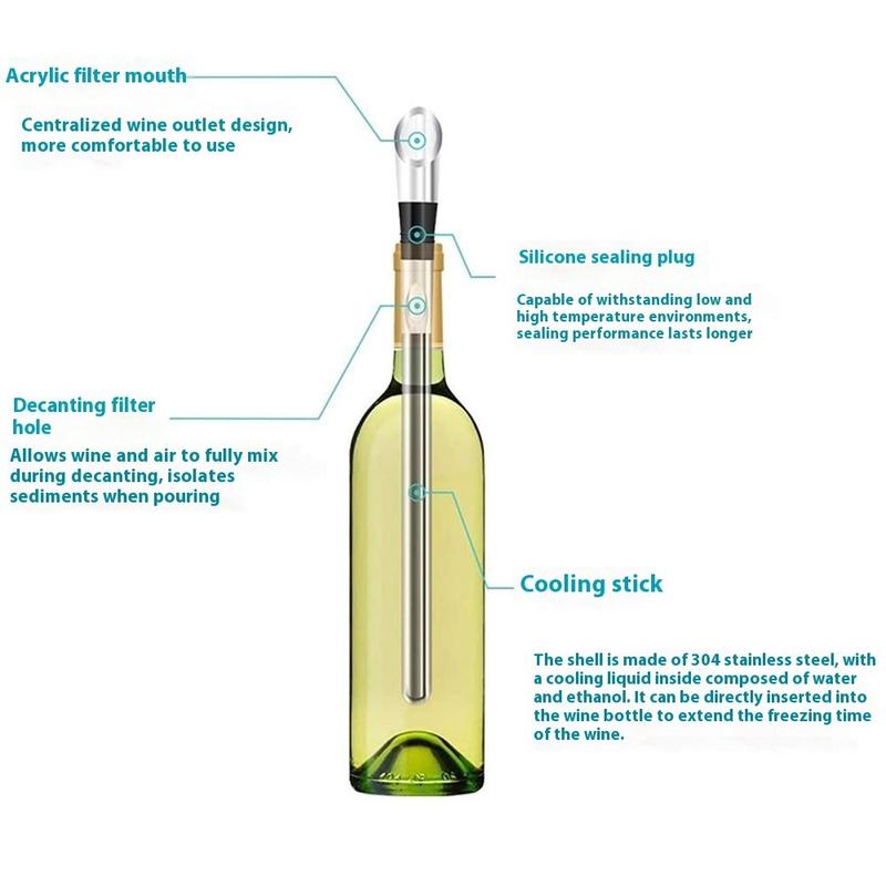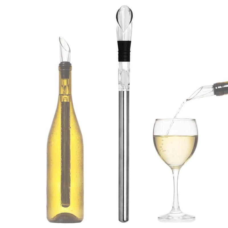 3-i-1 vinkølestang i rustfrit stål - isfri kølepind med belufter og skænkeprop