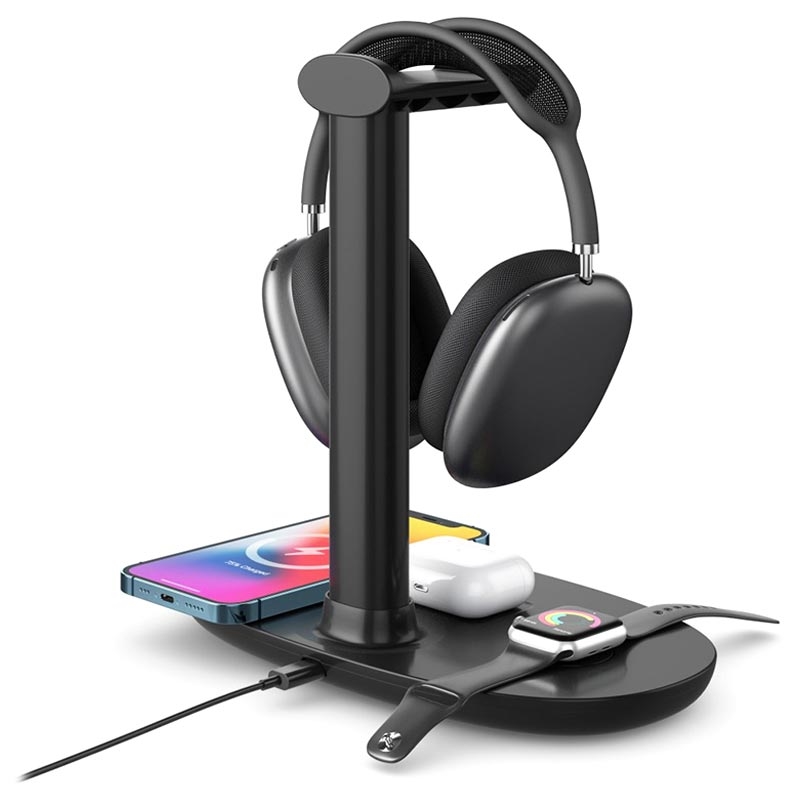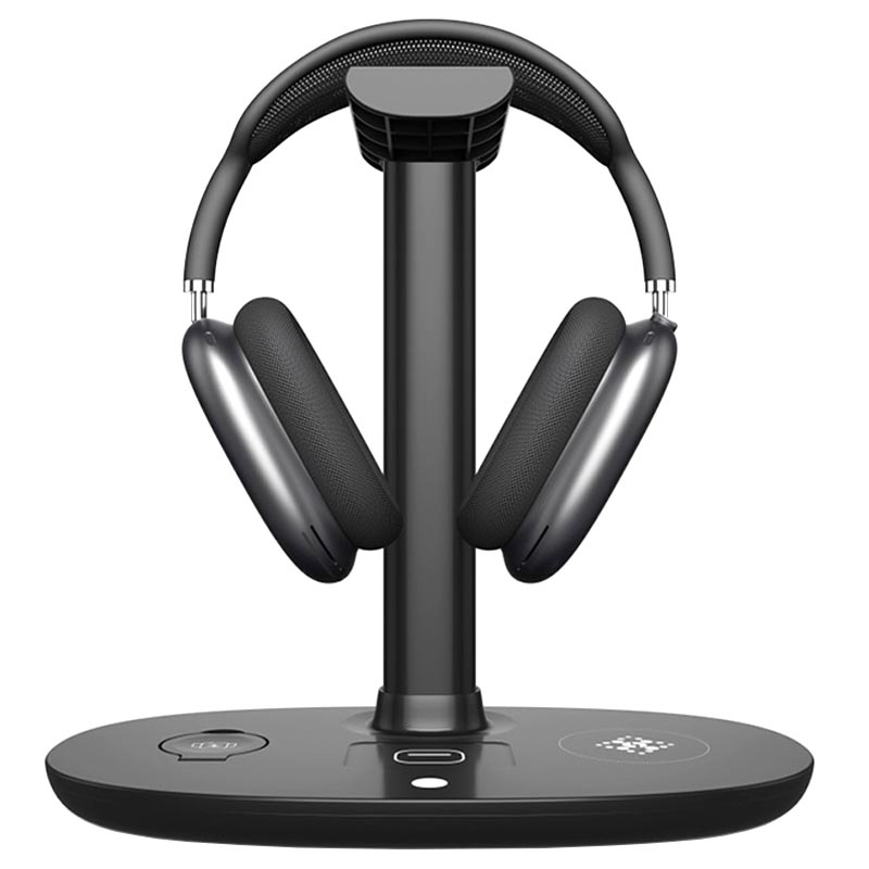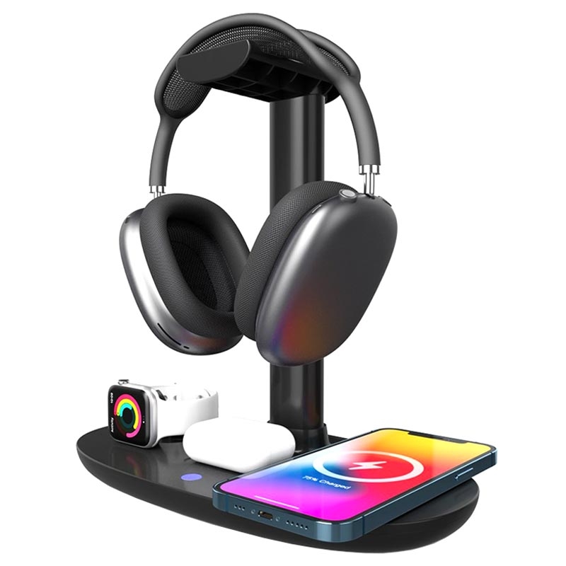 - Multifunktionel, trådløs opladningsstation med stativ til hovedtelefoner