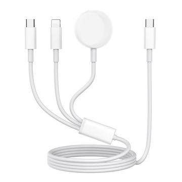 3-i-1 USB-C-opladerkabel til USB-C, Lightning, trådløs Apple Watch-oplader - 1m