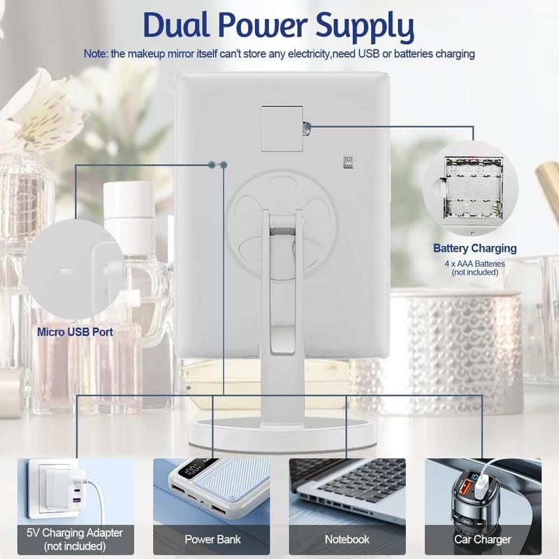 - Flere forstørrelsesmuligheder - Inkluderer 1X, 2X og 3X forstørrelsespaneler plus et aftageligt 10X rundt spejl, så du kan fokusere på fine detaljer som eyeliner, vipper og hudplejepræcision.