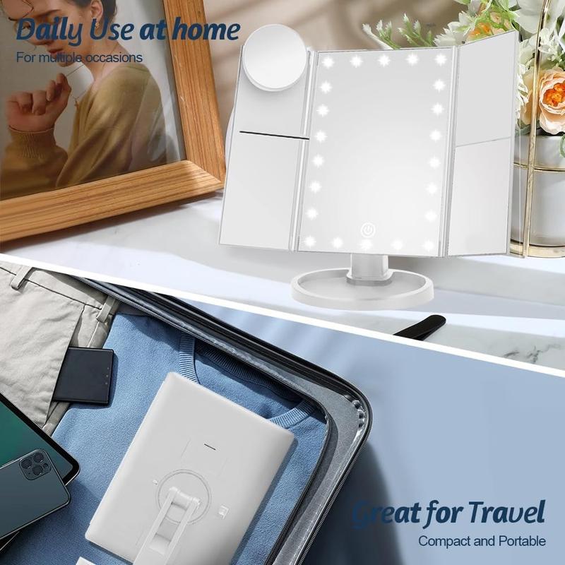 3-sidet foldbart makeupspejl med 22 LED-lys - 1X/2X/3X/10X forstørrende sminkespejl