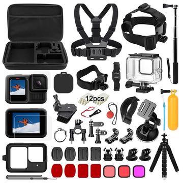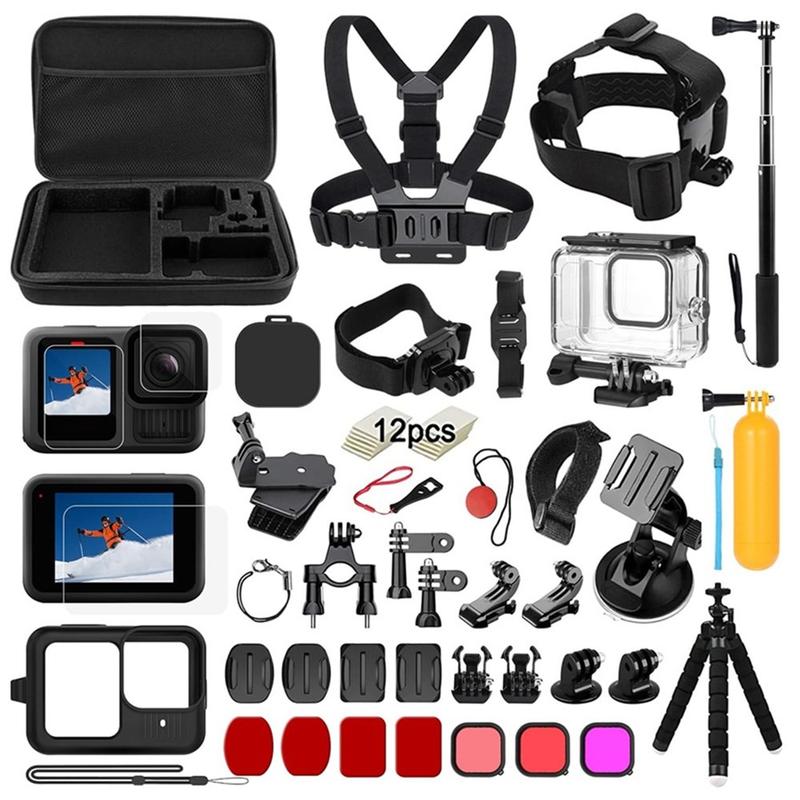 39-i-1-tilbehørssæt til GoPro Hero13 Black - vandtæt taske, bryst- og hovedrem, selfie-stang, beslag + 9H-skærmbeskyttere