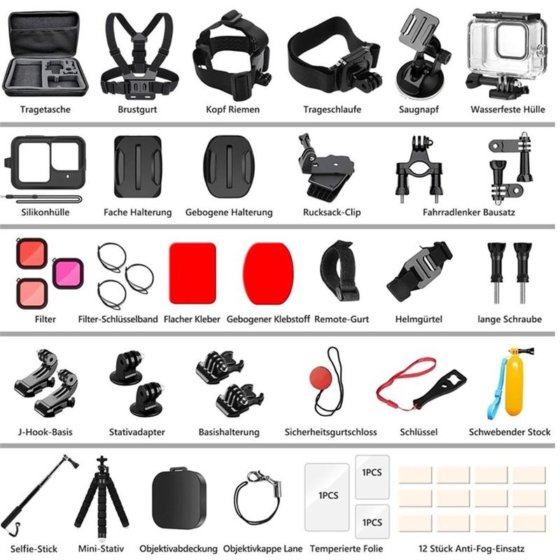 Dette sæt giver dig en klar-til-brug-opsætning til flere filmscenarier uden at købe tilbehør separat. Du får praktiske holdere til actionoptagelser, fleksible værktøjer til kreative vinkler og beskyttelseselementer, der hjælper med at holde din GoPro i bedre stand over tid. Ideel til begyndere og erfarne brugere, der vil have et alsidigt sæt i én pakke.