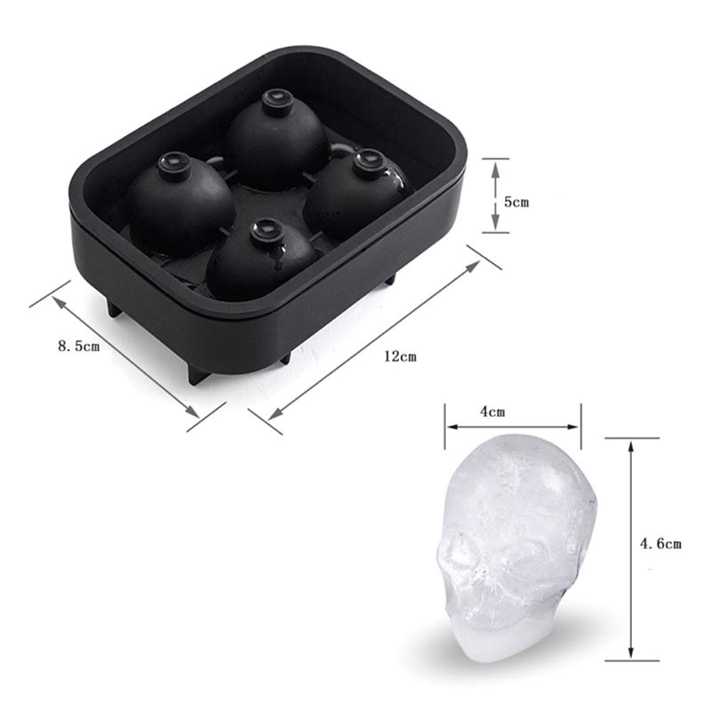 Lav DIY-isterninger i kranie motiv med denne 3D isterningform i silikone. Med denne isterningform i silikone kan du lave fire store 3D isterninger med kranie motiv. Disse isterninger smelter langsomt og har et realistisk design. Nedkøl enhver læskedrik med disse 3D isterninger i kranieform.