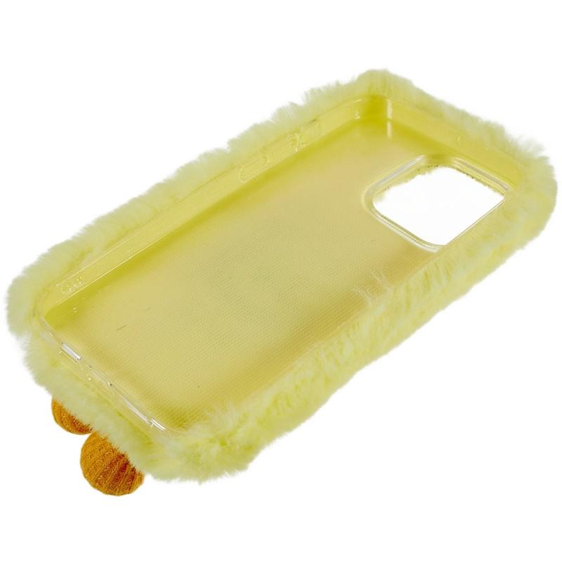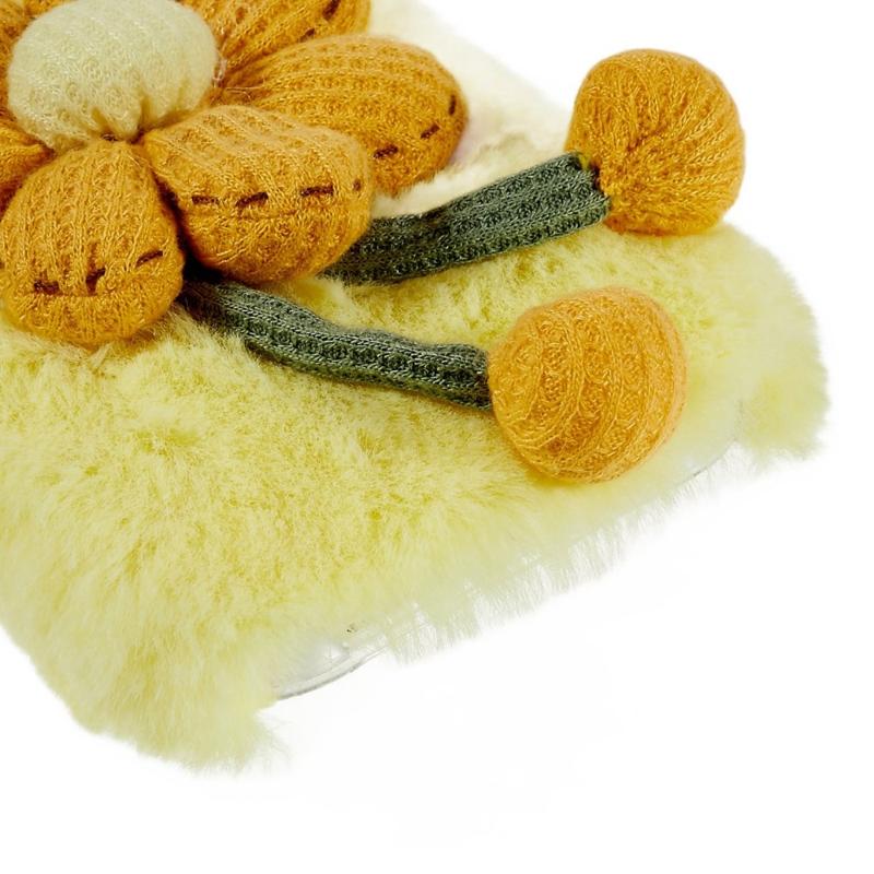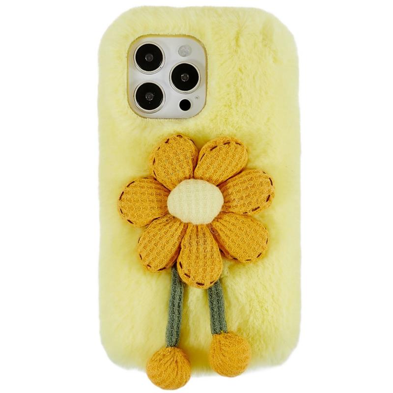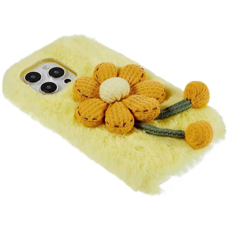 3D Plush Furry Vinter iPhone 14 Pro Max TPU Cover - Gul Blomst