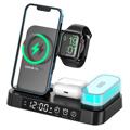 Z6 Foldbar 5-i-1 15W Magnetisk Trådløs Oplader med Blændende Atmosfærelys/Digitalt Ur